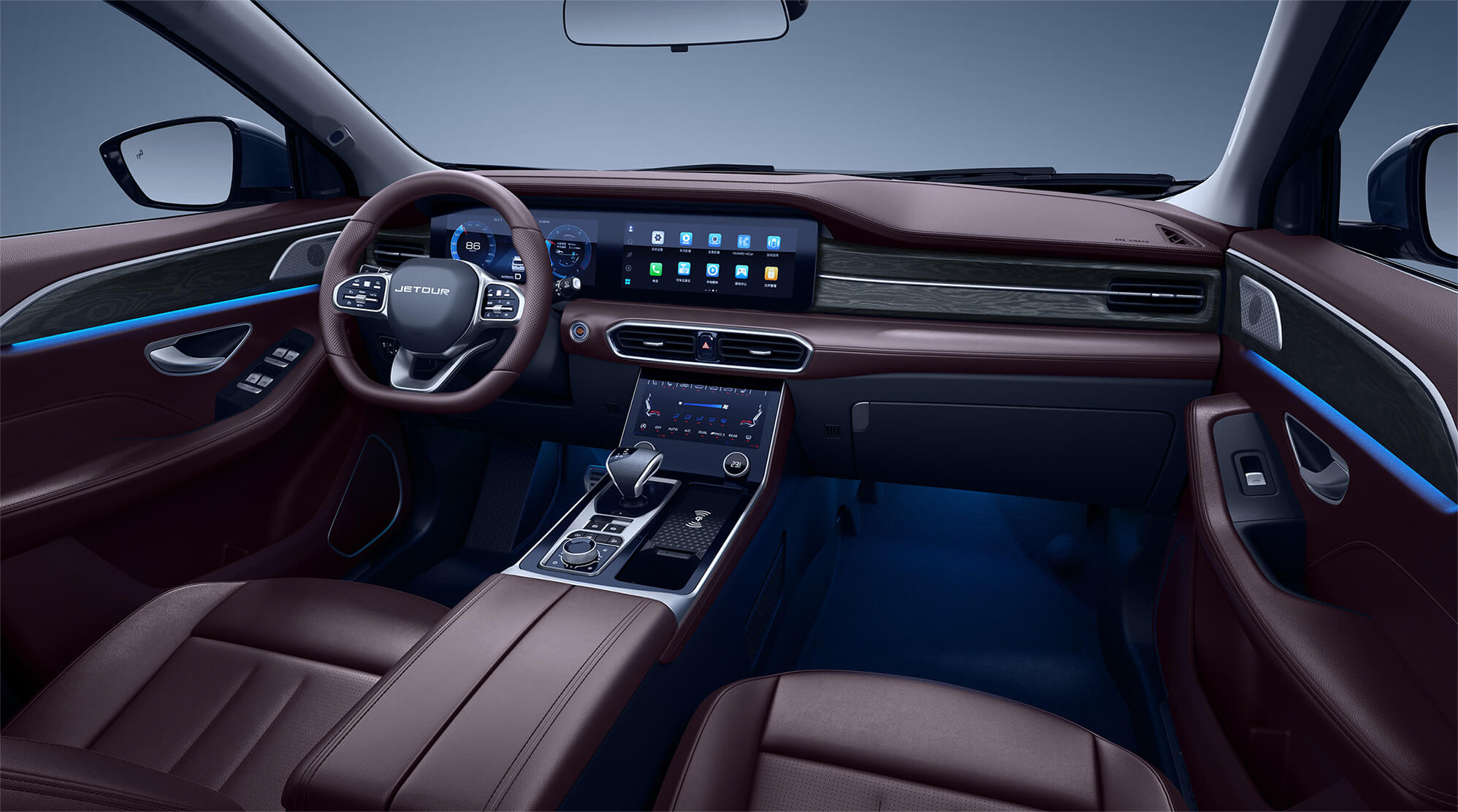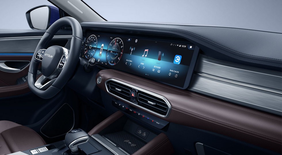 Интерьер X90 Plus разработан в духе «домашнего офиса на колёсах» — уютно, технологично, практично.